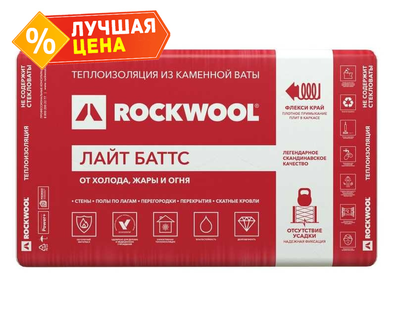 ROCKWOOL ЛАЙТ БАТТС® с технологией Флекси – лёгкие гидрофобизированные теплоизоляционные плиты, изготовленные из каменной ваты на основе базальтовых пород.